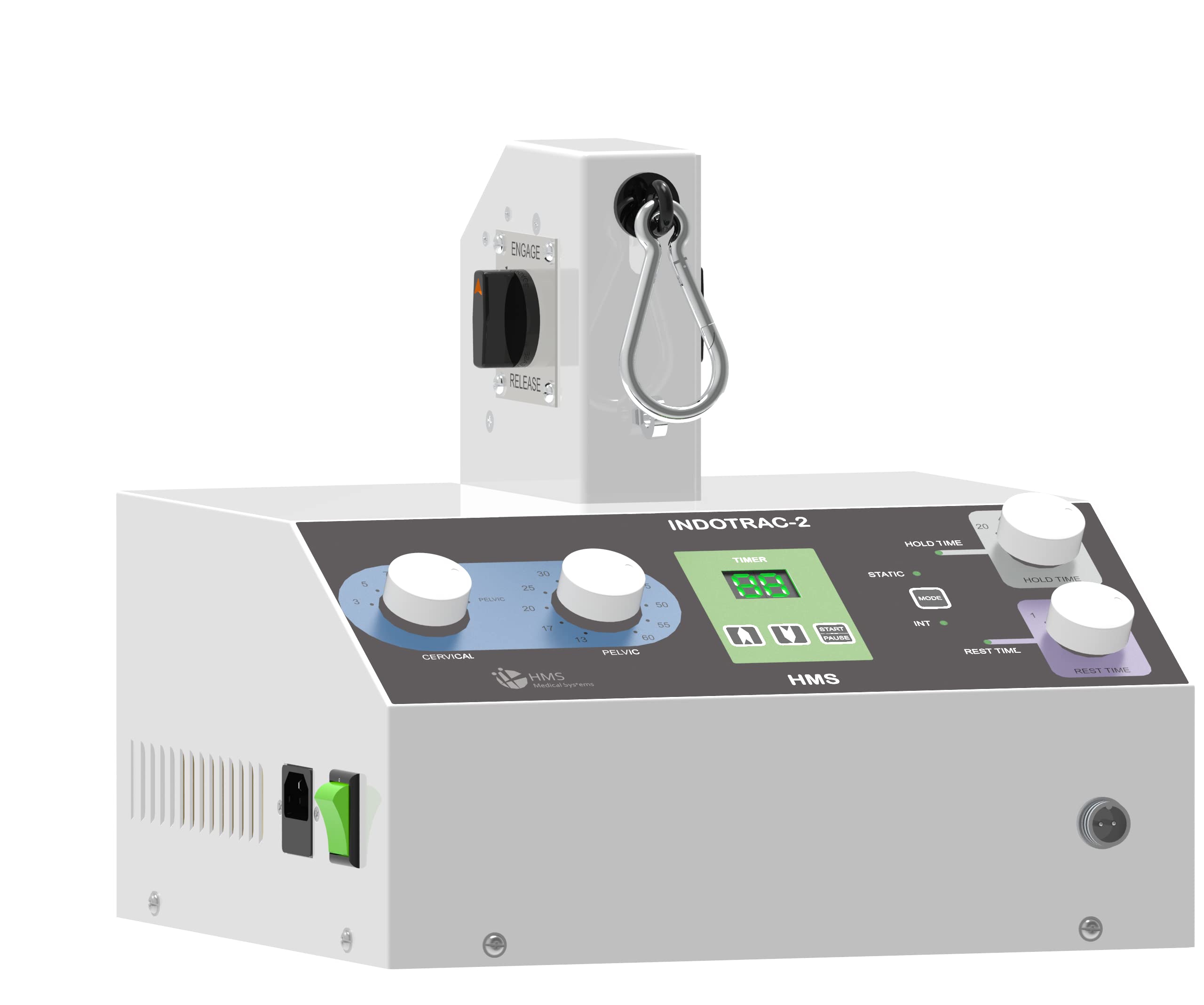 INDOTRAC-2 is an advanced technology solid state circuitry Static / Intermittent traction unit. Moulded Aluminium gear box and metal gears gives long life to the equipment. It has silence smooth and powerful motor to pull the appropriate weight. The treatment time is controlled by digital timer and has indicators for Rest / Hold time. Separate tension control for cervical and pelvic.