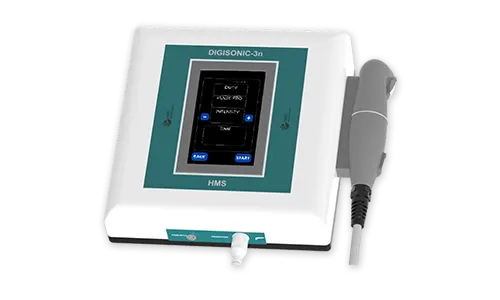 The DIGISONIC 3n Ultrasound Therapy is a state-of-the-art and innovative device, designed to meet international standards while maintaining exceptional quality. Our device is equipped with advanced features, including 1 MHz and 3 MHz output options, and a contact control sensor that ensures the safety and effectiveness of the therapy. The device boasts a micro-controller based circuitry, with a large 5-inch color touch display that displays all relevant parameters. It comes pre-loaded with 47 evidence-based programs, and has 30 user-defined memory slots for customized therapy options. The contact control sensor provides an added level of safety by automatically suspending the ultrasound output when the transducer is not in proper contact with the skin.